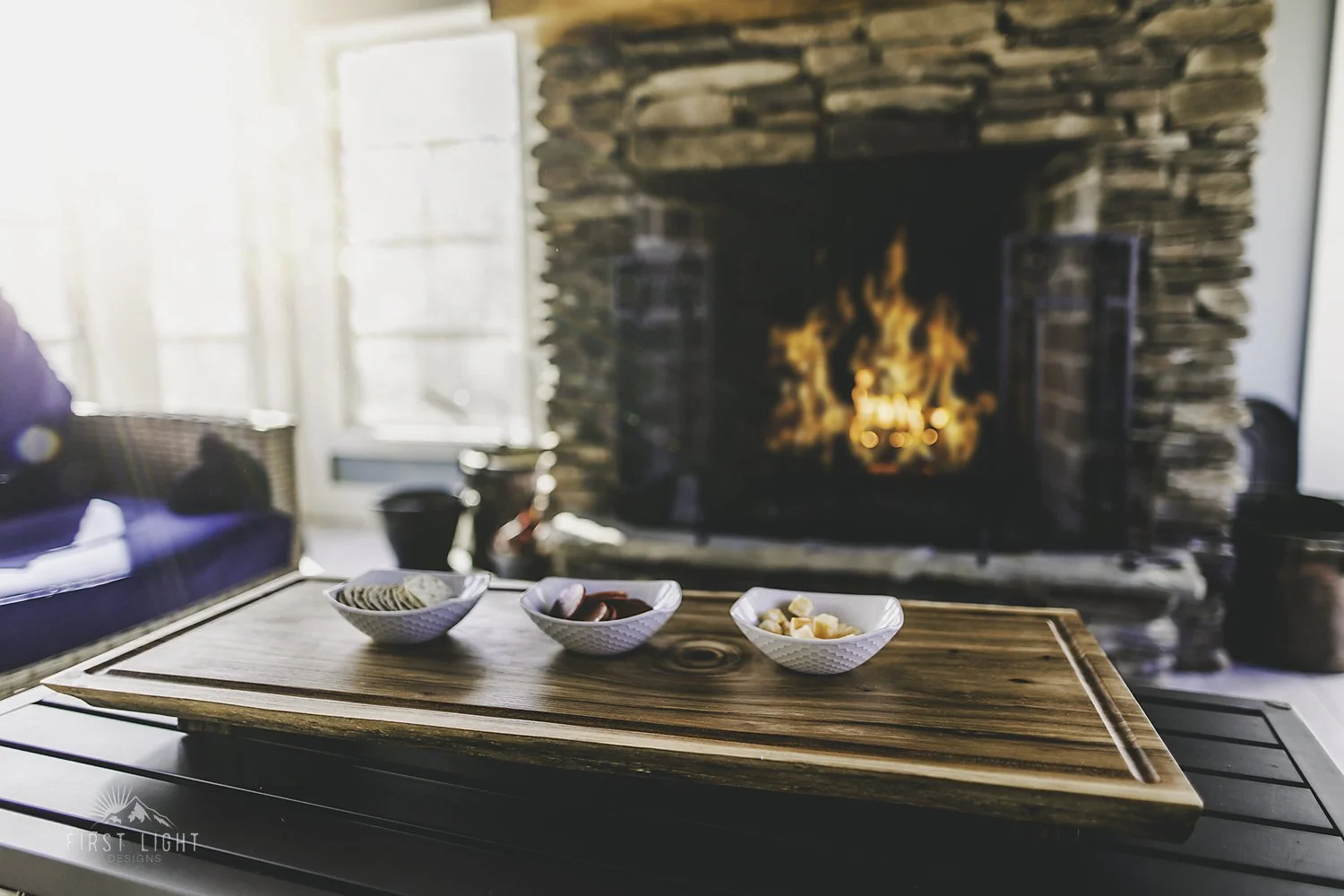 Our walnut meat carving boards come in a variety of sizes to meet any need. They feature a gorgeous live edge as well as a juice groove. A gorgeous yet functional kitchen accessory!